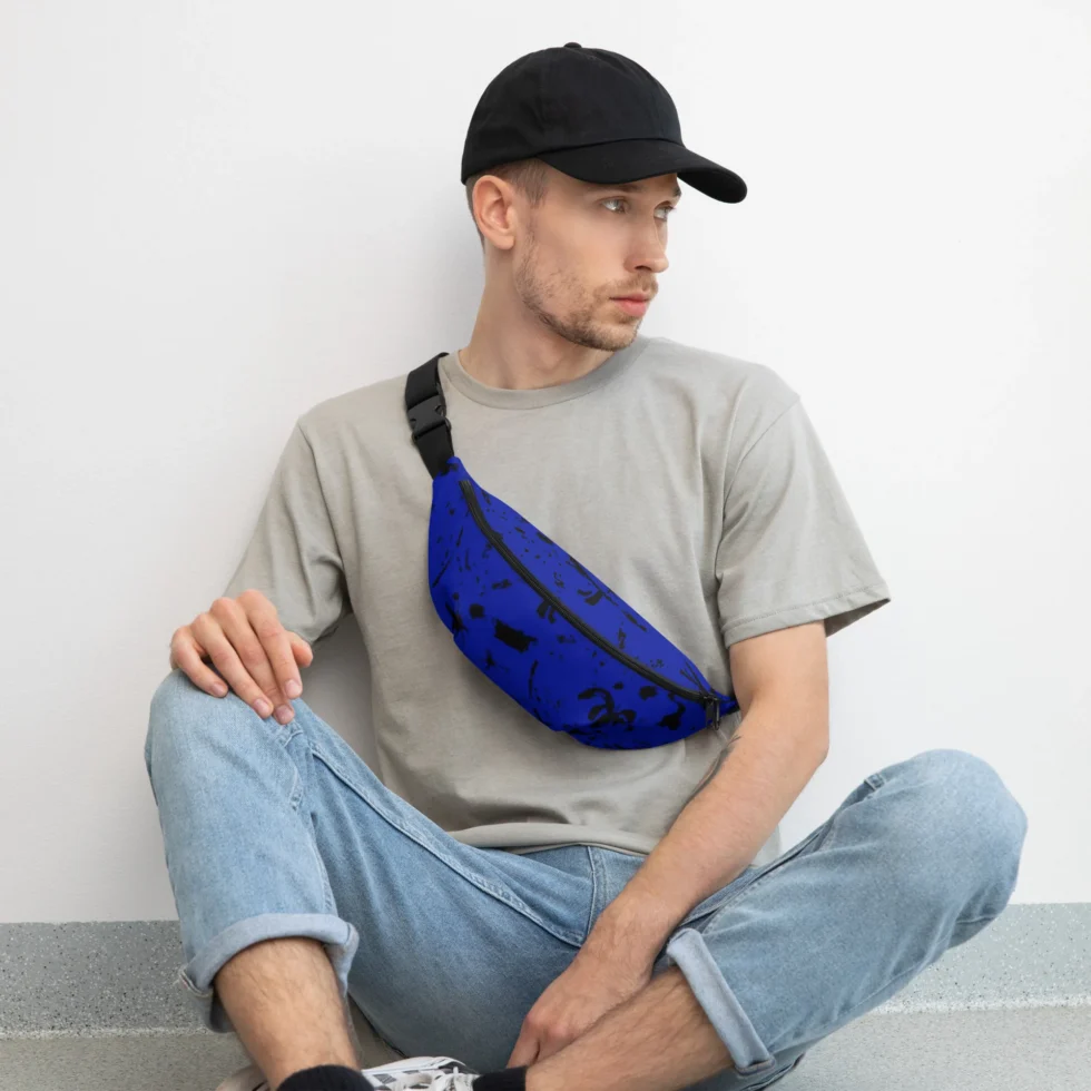 Jostas somiņa ar regulējamu siksnu “Logan” ir piemērota gan vīriešiem, gan sievietēm, jo zilā krāsa ar melniem abstraktiem elementiem piestāv abiem dzimumiem.