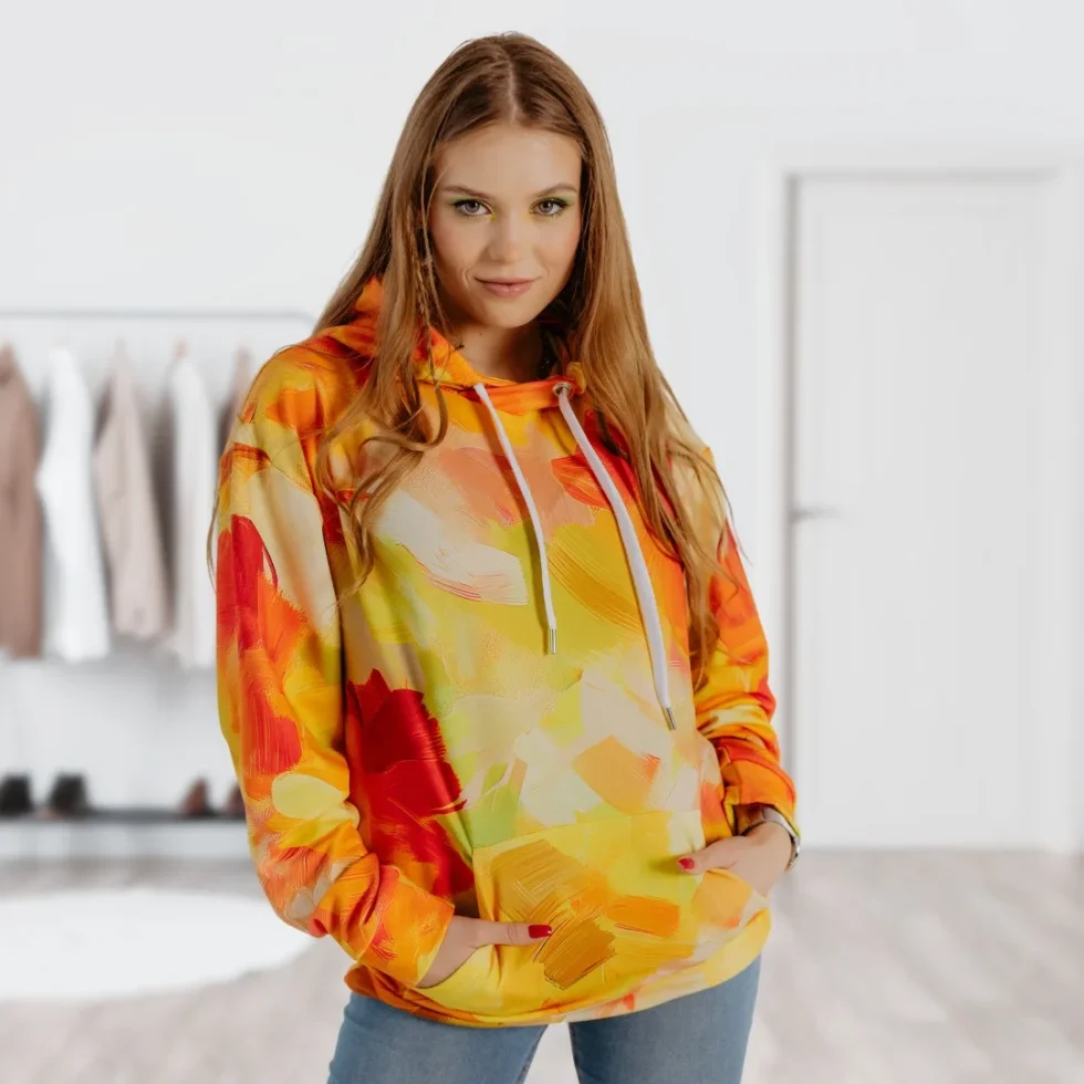 Hūdijs ar apdruku “Mia” gaišos un saulainos toņos ir kā radīts Tev, ja vēlies paust savu dzīvesprieku un atklāt vsiem savu radošo personību ikdienā! Krāsas iedevesmo un pozitīvi uzlādē!