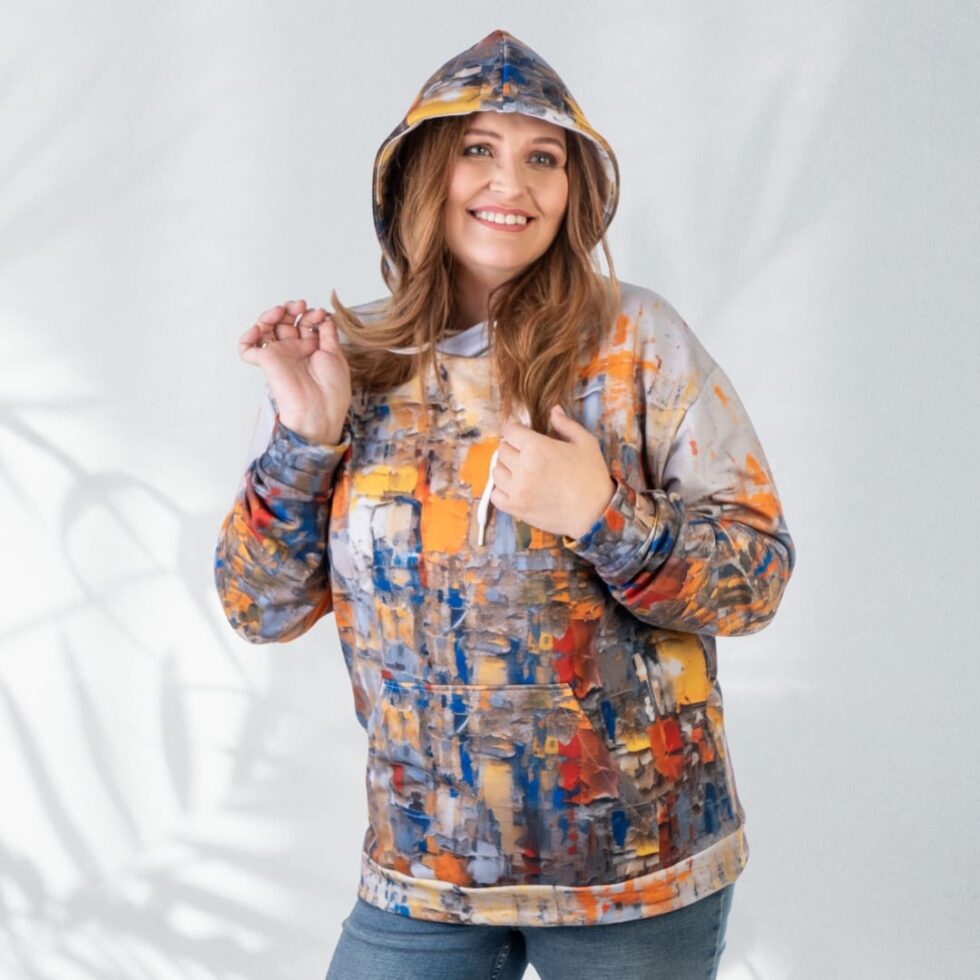 Krāsains unisex hūdijs “Remy” ar abstrakta dizaina apdruku ir ērts un košs. Tas ir kā vizuāls manifests Tavai personībai — krāsains, drosmīgs, nedaudz haotisks, bet vienmēr harmonisks. Tas nav radīts, lai saplūstu ar pūli. Tas ir radīts, lai Tu izceltos.