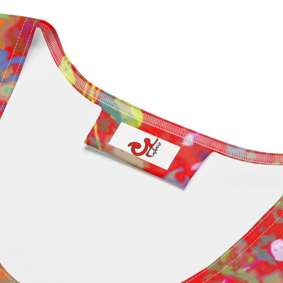 Kleita “Bella” ir elastīga un praktiska, nodrošinot nevainojamu komfortu visas dienas garumā. Kleitas dizains ir kā dinamisks, gleznains dabas motīvs, kas veidots spilgtā sarkanā pamattonī ar abstraktiem krāsu triepieniem.