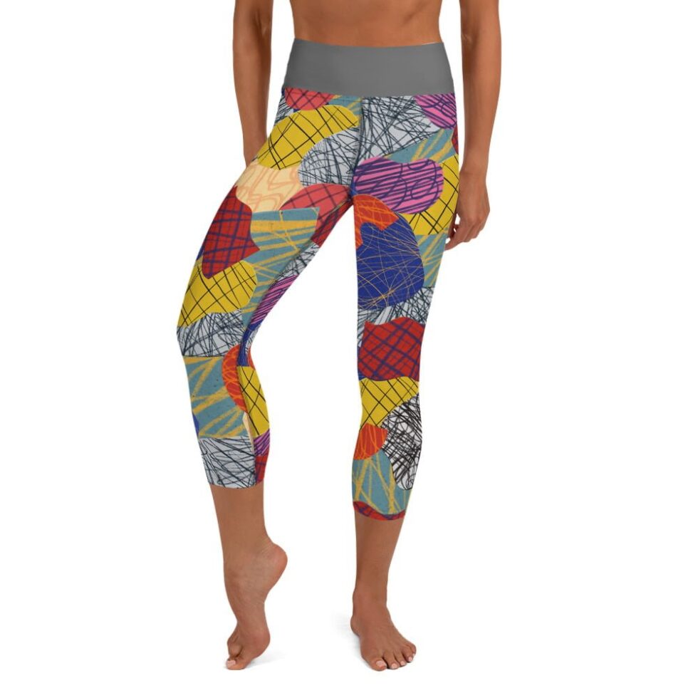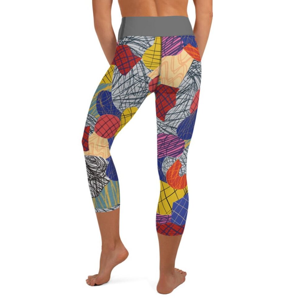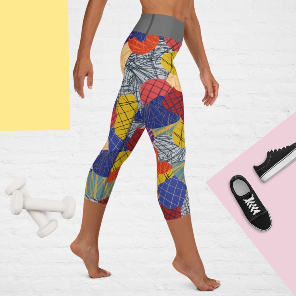 Krāsaini sieviešu legingi ar abstraktu dizainu – ideāli jogai, sportam un ikdienai. Legingos dominē abstraktu apļu un līniju raksts, kas rada dinamisku un mūsdienīgu izskatu.