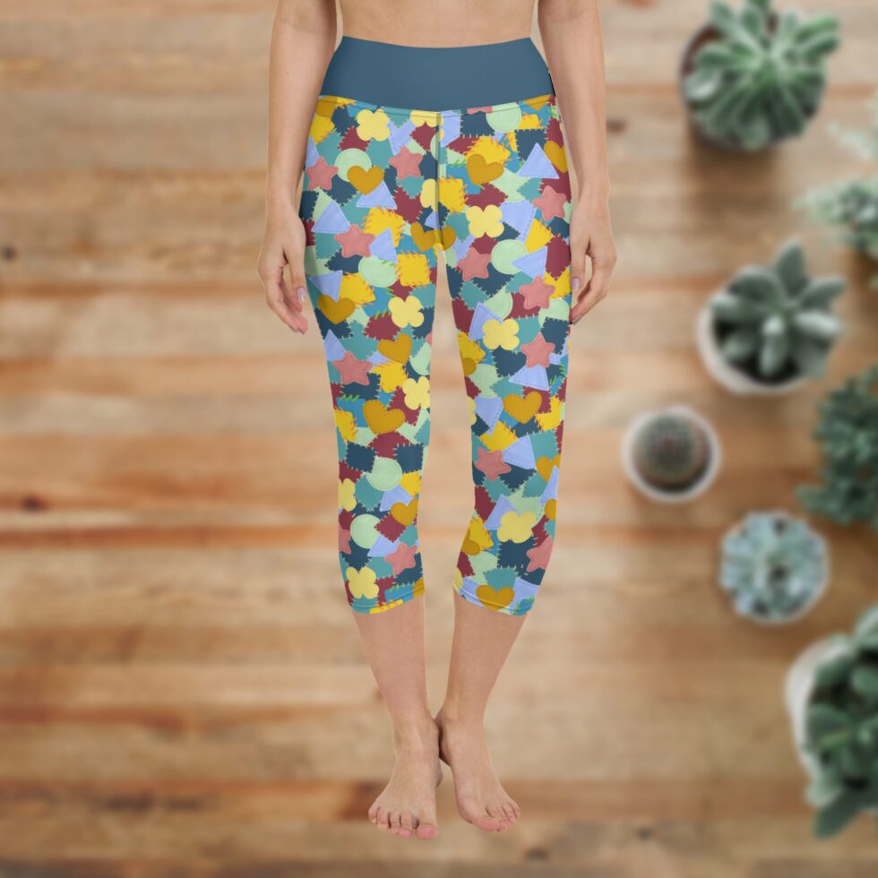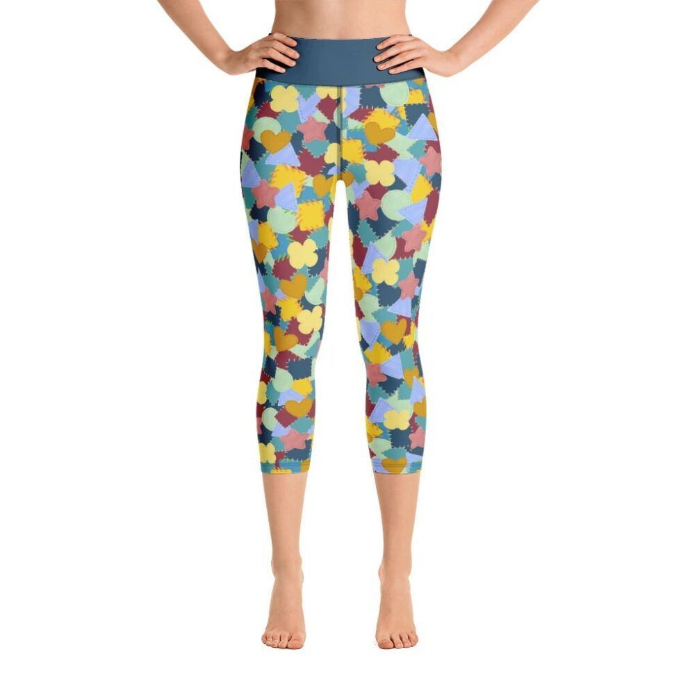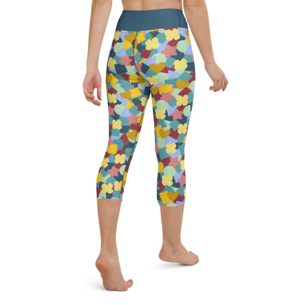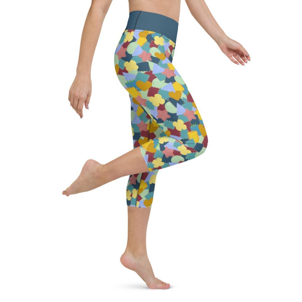 Kapri legingi ar krāsainu apdruku un augstu, elastīgu jostasvietu ir lieliska izvēle jogai, sporta zālei vai vienkārši ērtai atpūtai mājās. Tie saderēs kopā arī ar ikdienas apģērbu, radot neformālu un brīvu stilu.