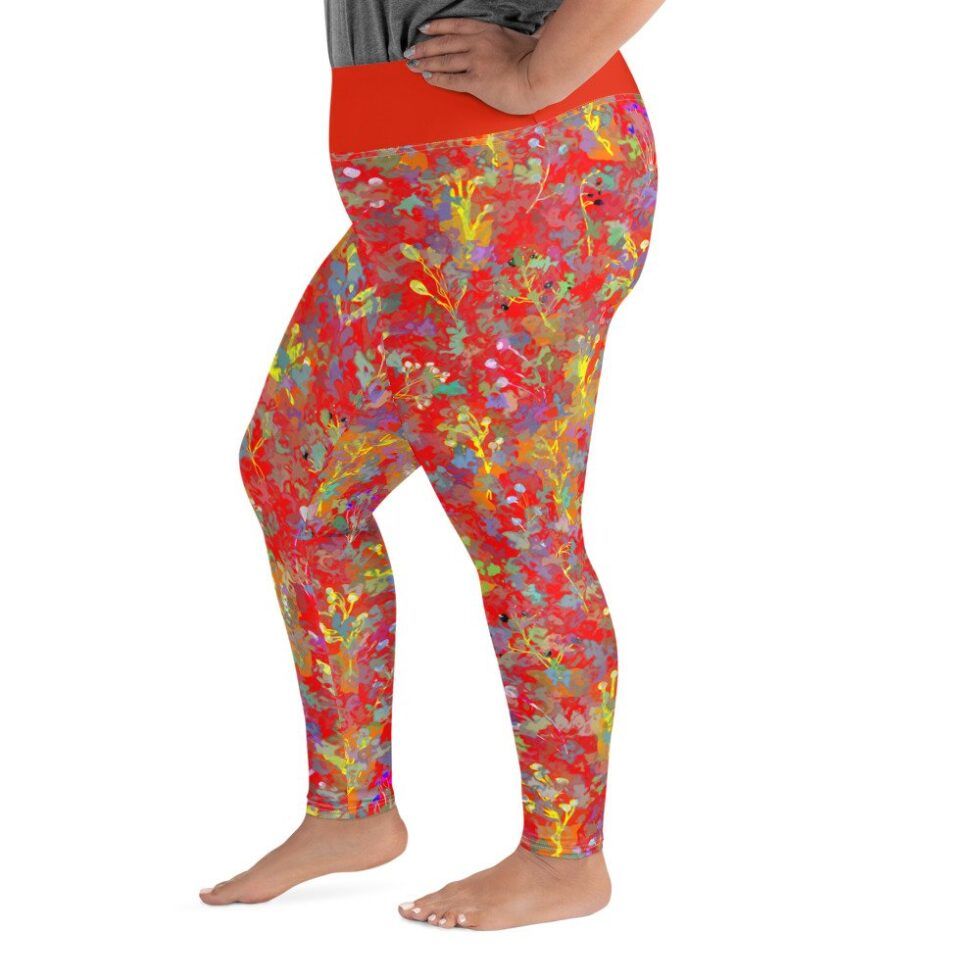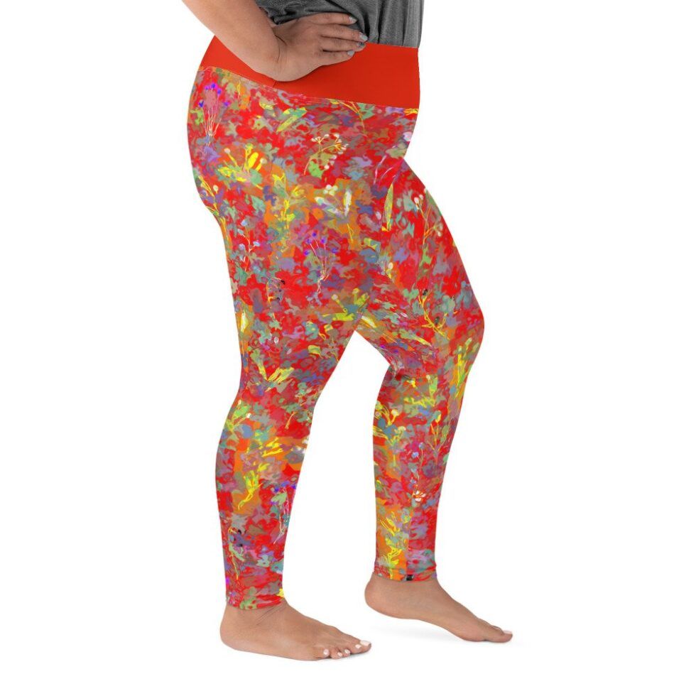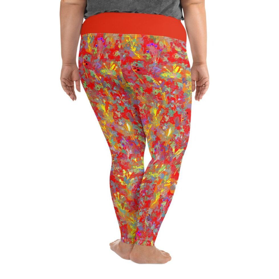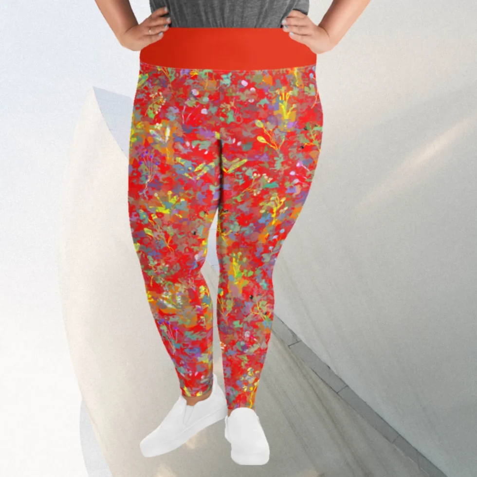 Plus size legingi ar abstraktu, krāsainu apdruku uz sarkana fona liks justies ērti arī sievietēm, kas ikdienā valkā lielāku izmēru apģērbu. Lai šie legingi kļūst par Tavu jauno favorītu gan ikdienas gaitām, gan aktīvām nodarbībām!