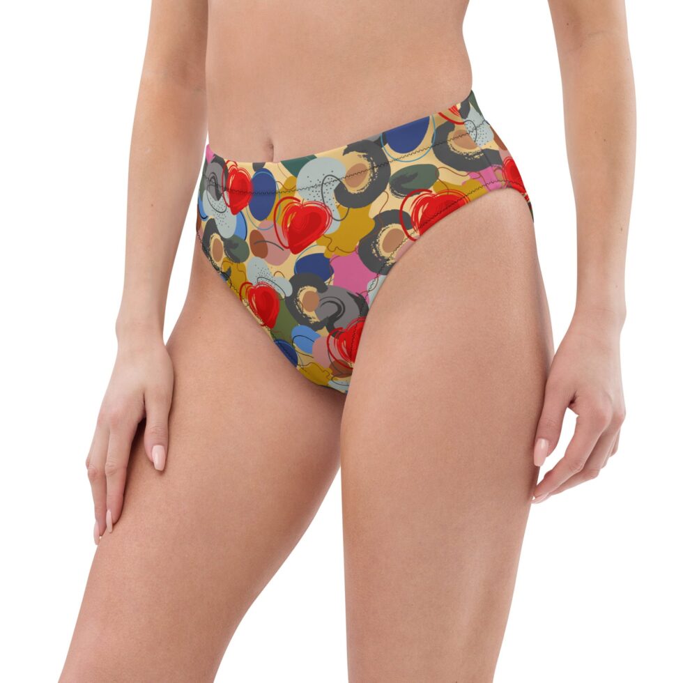 Bikini peldkostīma biksītes “Forte” ir radītas Tev, ja vēlas izcelties ar vieglumu, rotaļīgumu un vizuālu pārliecību.Krāsainie elementi un siržu formas veido abstraktu un dinamisku kompozīciju.