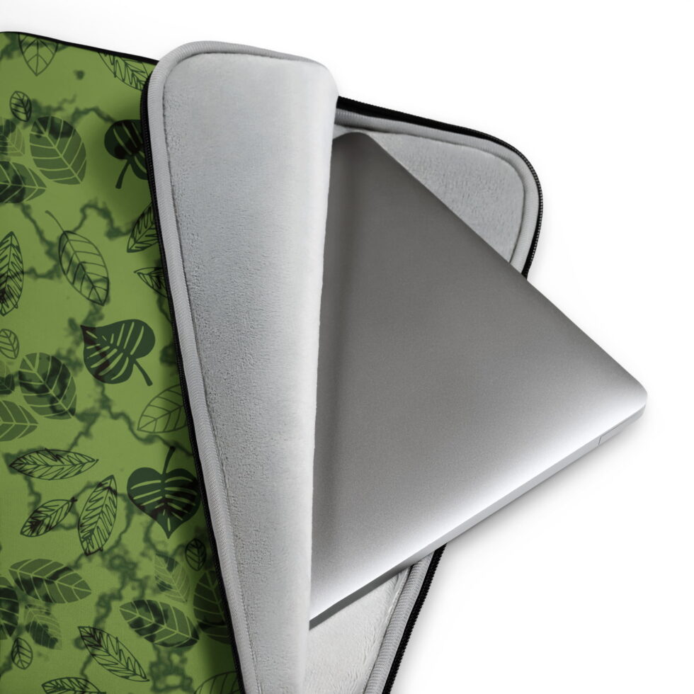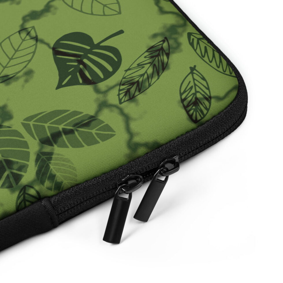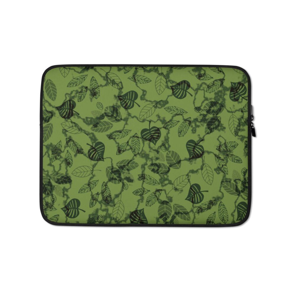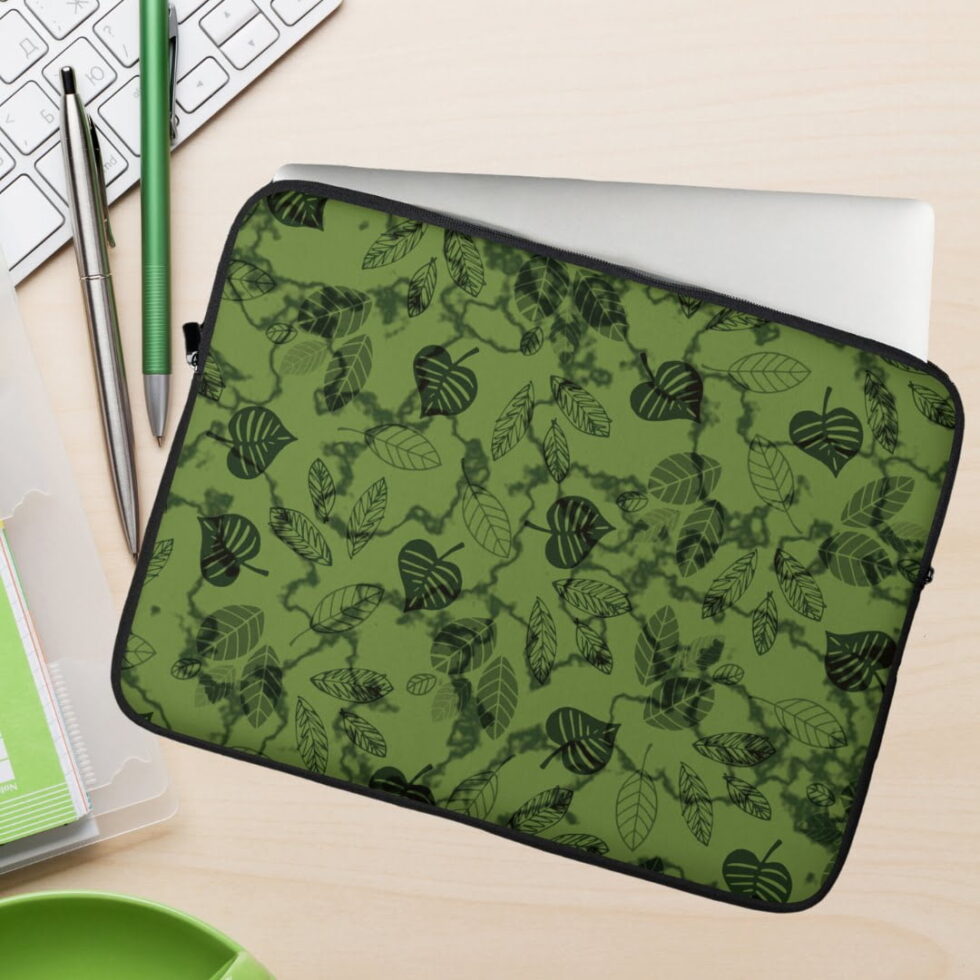 Aizsargā savu klēpjdatoru ar dabas iedvesmotu stilu! Laptopa ietvars ar māksliniecisko lapu apdruku apvieno radošumu ar ūdensizturīga neoprēna izturību, nodrošinot aizsardzību pret mitrumu un triecieniem ikdienā un ceļojumos.