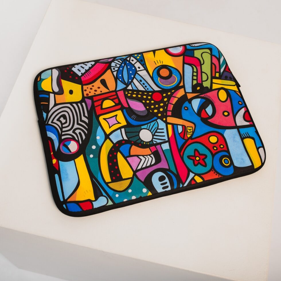Laptopa maka vizuāli bagātā apdruka ir dinamisks grafisku formu un spilgtu krāsu salikums, kas piešķirs tavam tēlam unikālu un radošu izskatu. Izgatavots no neoprēna, tas nodrošinās nevainojamu komfortu un drošību ikdienā.