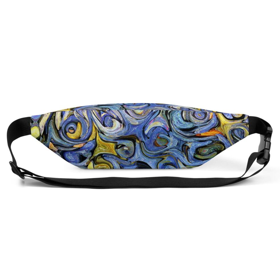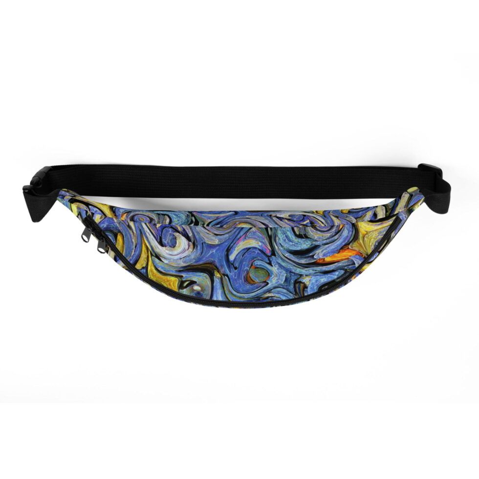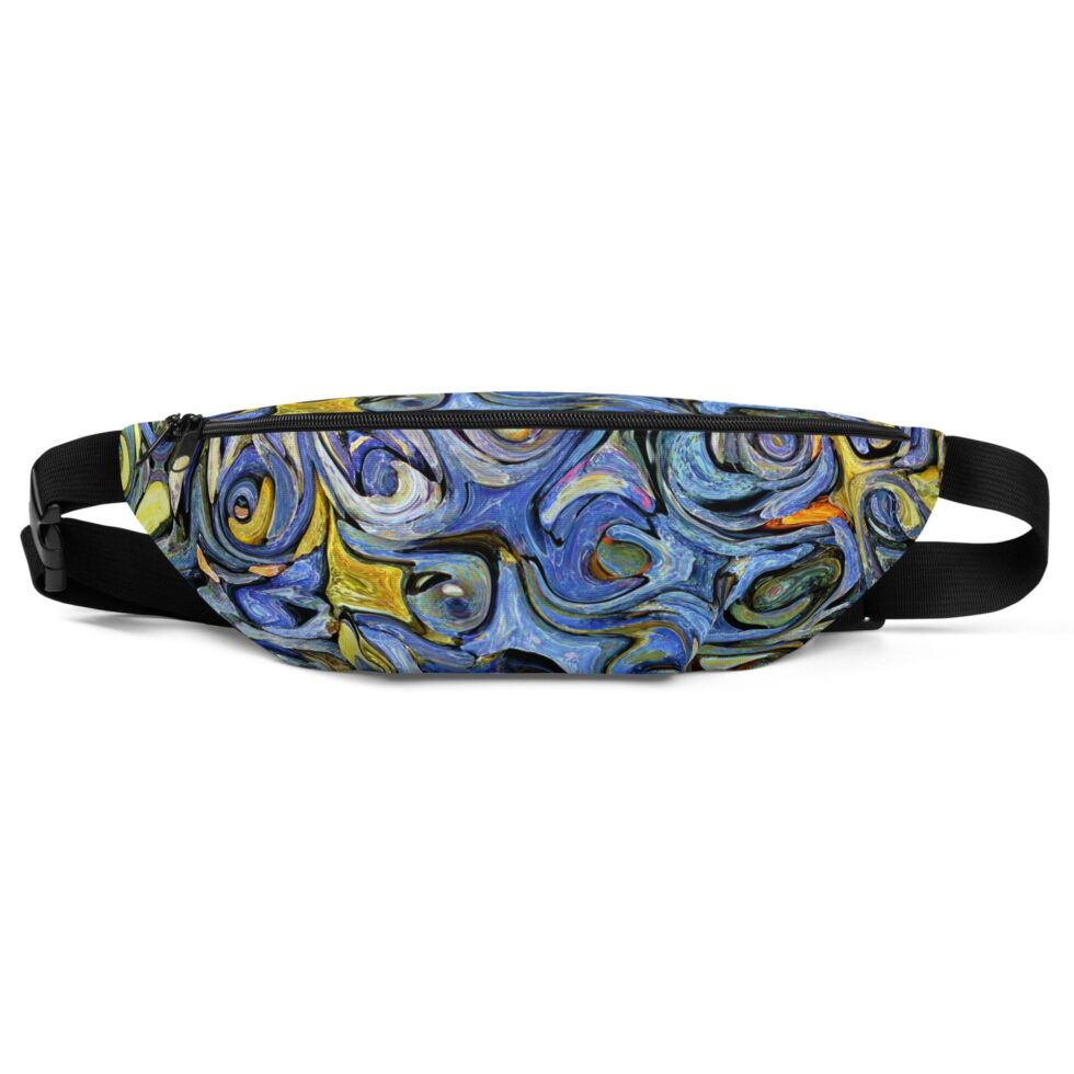Jostas somiņa ar regulējamu siksnu “Alexa” ir ideāli piemērota ceļojumiem vai ikdienas lietošanai. Somas apdrukai izmantoti zilie, violetie, dzeltenie un melnie toņi savijas abstraktās formās, radot efektu, kas atgādina otas triepienus uz audekla. Šī somiņa ir kā enerģijas sprādziens, kas iedvesmos Tevi kustībai un jauniem piedzīvojumiem.