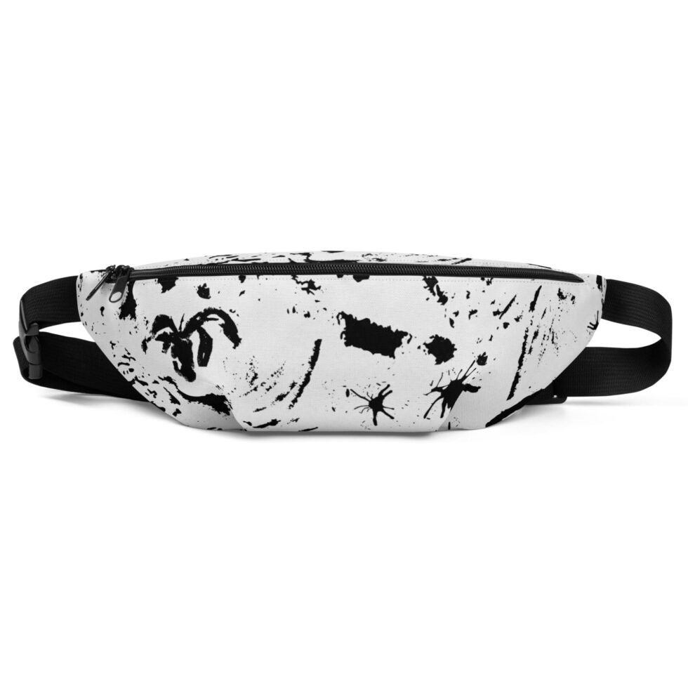 Jostas somiņa ar regulējamu siksnu “Logan” apvieno funkcionalitāti un stilu – tai ir regulējama melna siksna, izturīgs materiāls un kompakts izmērs. Uz gaiši pelēkā, gandrīz baltā fona, melnie elementi un abstraktās formas veido dinamisku ritmu.