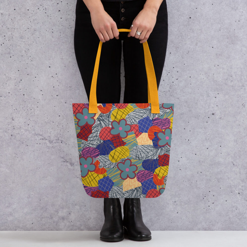 Tašas dizaina abstraktā formu un līniju saspēle piešķir tai dinamisku un modernu izskatu. Tā ir izgatavota no izturīga audekla un nodrošinās nevainojamu komfortu un stilu ikdienai.