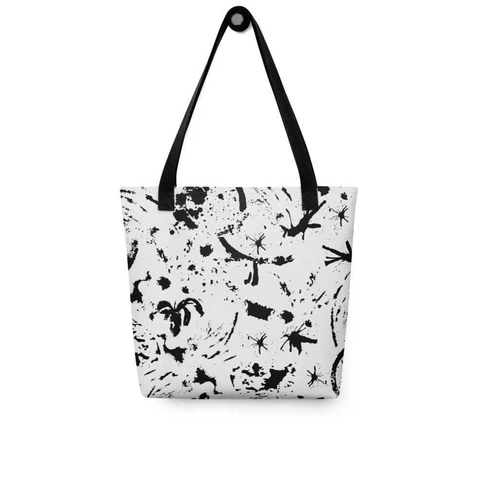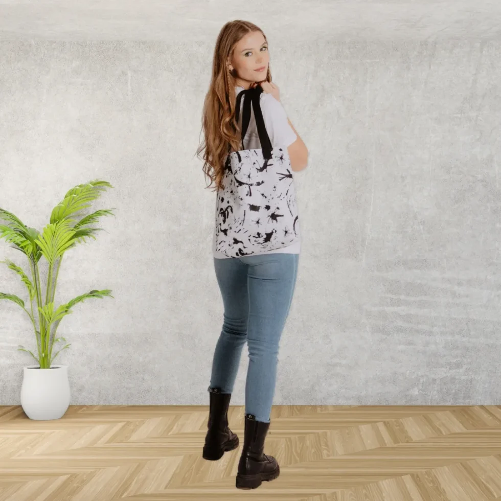 Taša ar kokvilnas rokturiem “Logan” gaiši pelēkā pamattonī un ar melnas krāsas abstraktiem elementiem ir vasarīga un praktiska izvēle. Šo krāsu kombināciju varēsi komplektēt ar visadažādako stilu un krāsu apģērbiem.