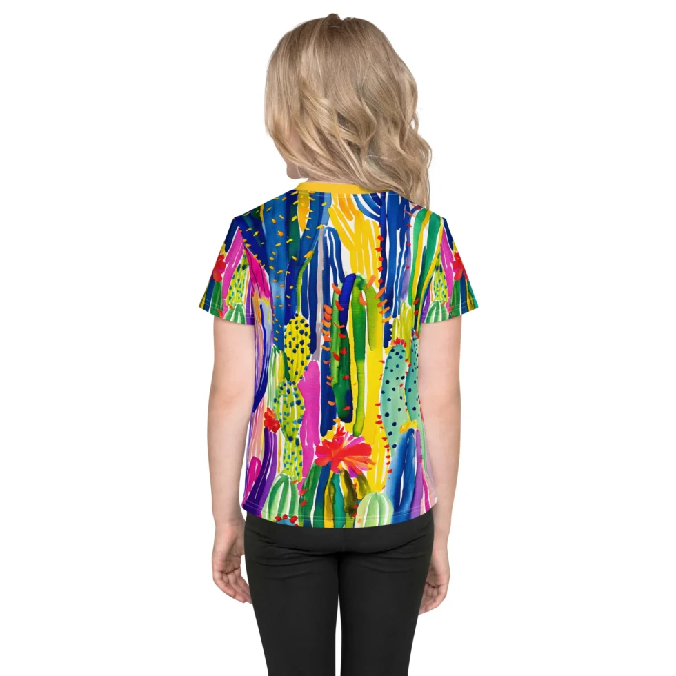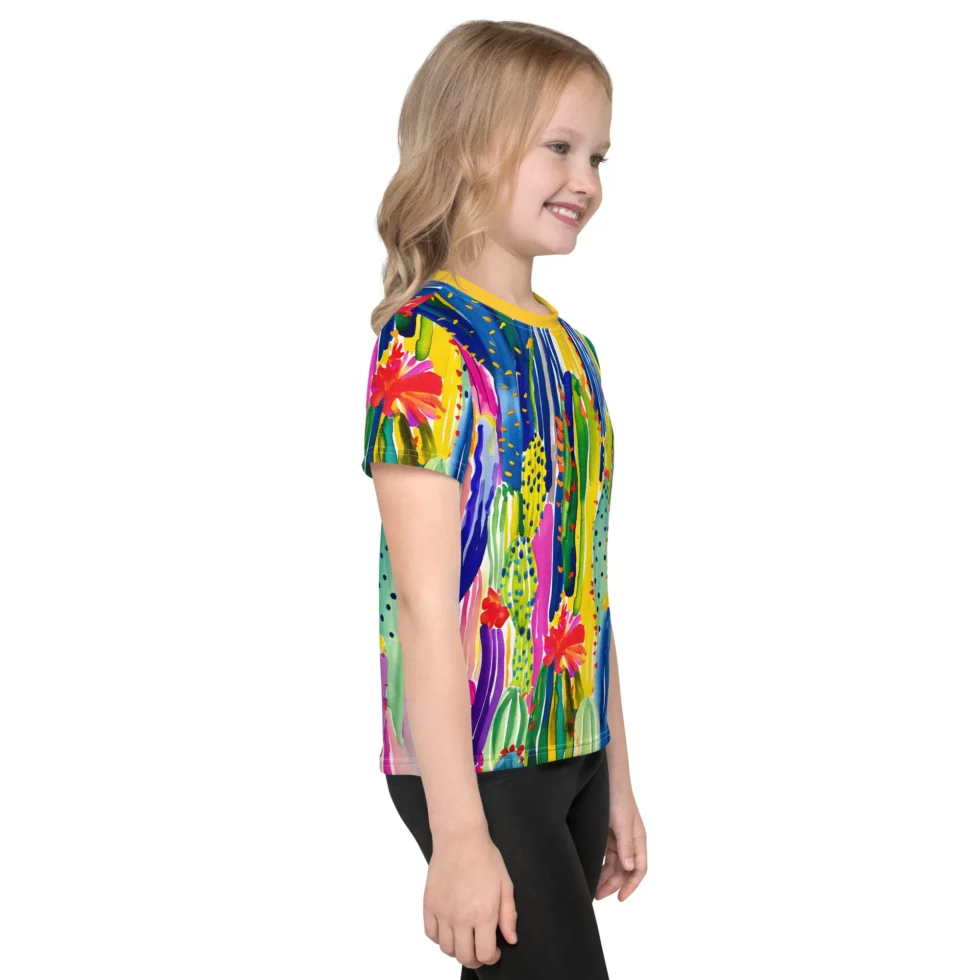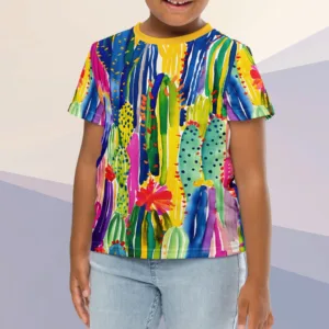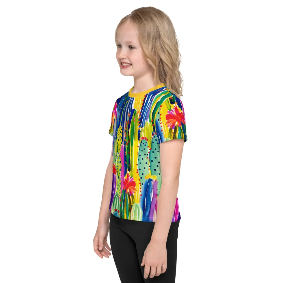 T-krekls bērniem “Rosario” ir tik krāsains un vasarīgs! Dizains veidots kā kaktusu motīvu interpretācija košā rokas gleznojumā. Vecāki noteikti novērtēs arī krekla praktiskās īpašības, jo tas saglabās savu izskatu un formu pat pēc vairākkārtējām mazgāšanām.