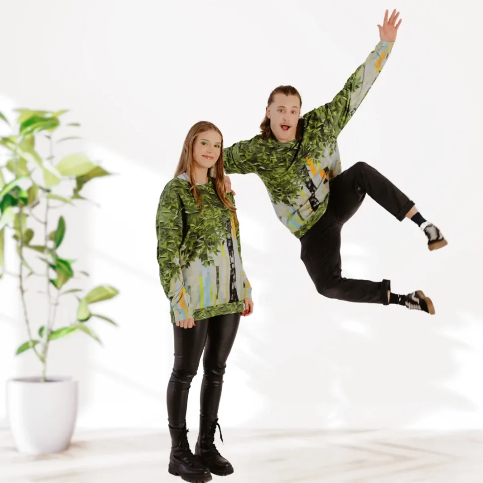 Zaļojoša koka kolāža dizainā dod brīvību Tavai fantāzijai izdomāt savu stāstu par to, ko Tev nozīmē rūpes par dabu. Šis džemperis atradīs vietu visdažādāko stilu garderobēs. Nēsā to gan ar džinsiem, gan brīvā stila auduma biksēm. Vari šo unisex džemperi izvēlēties arī kā pāra vai ģimenes vienojošo vizuālo elementu, jo tas lieliski izskatās gan sievietēm, gan vīriešiem.