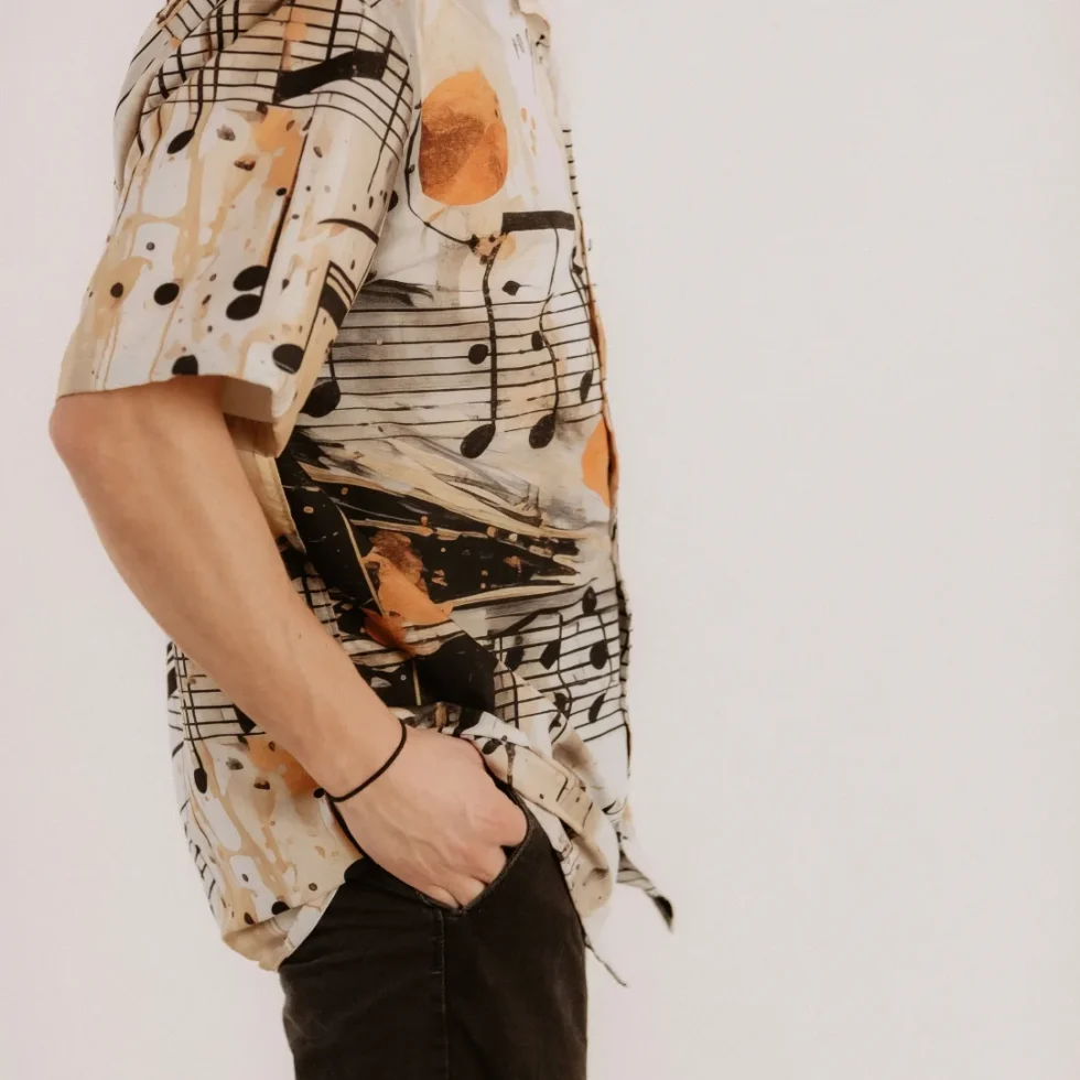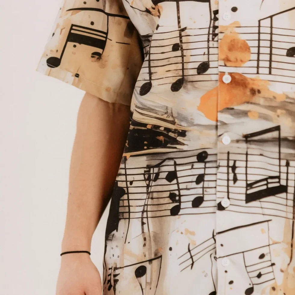 Brīva stila krekls “Lucido” ar nošu apdruku ir domāts tieši Tev, ja mūzika ir Tavs vaļasprieks un iedvesmas avots. Padari savu vasaras garderobi daudzveidīgāku ar šo “muzikālo” kreklu! Tas ir lieliska izvēle, kas apvieno stilu un praktiskumu.