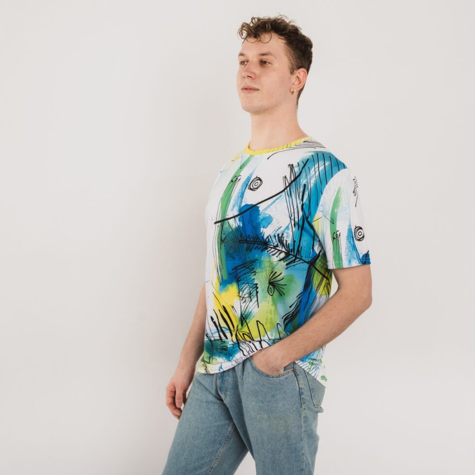 Pērkot šo vīriešu t- kreklu ar abstakto apdruku, Tu palīdzi spert mazu, bet būtisku soli tuvāk tīrākai planētai! Produkts tiek ražots pēc pasūtījuma, tātad tikai tad, kad būsi izteicis vēlmi to nēsāt, tādejādi neradot pārprodukciju un nevajadzīgu vides piesārņojumu.