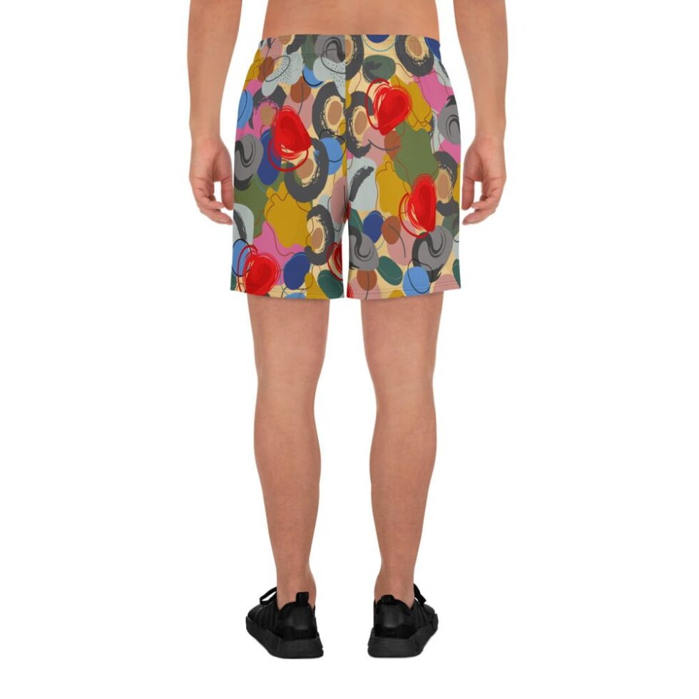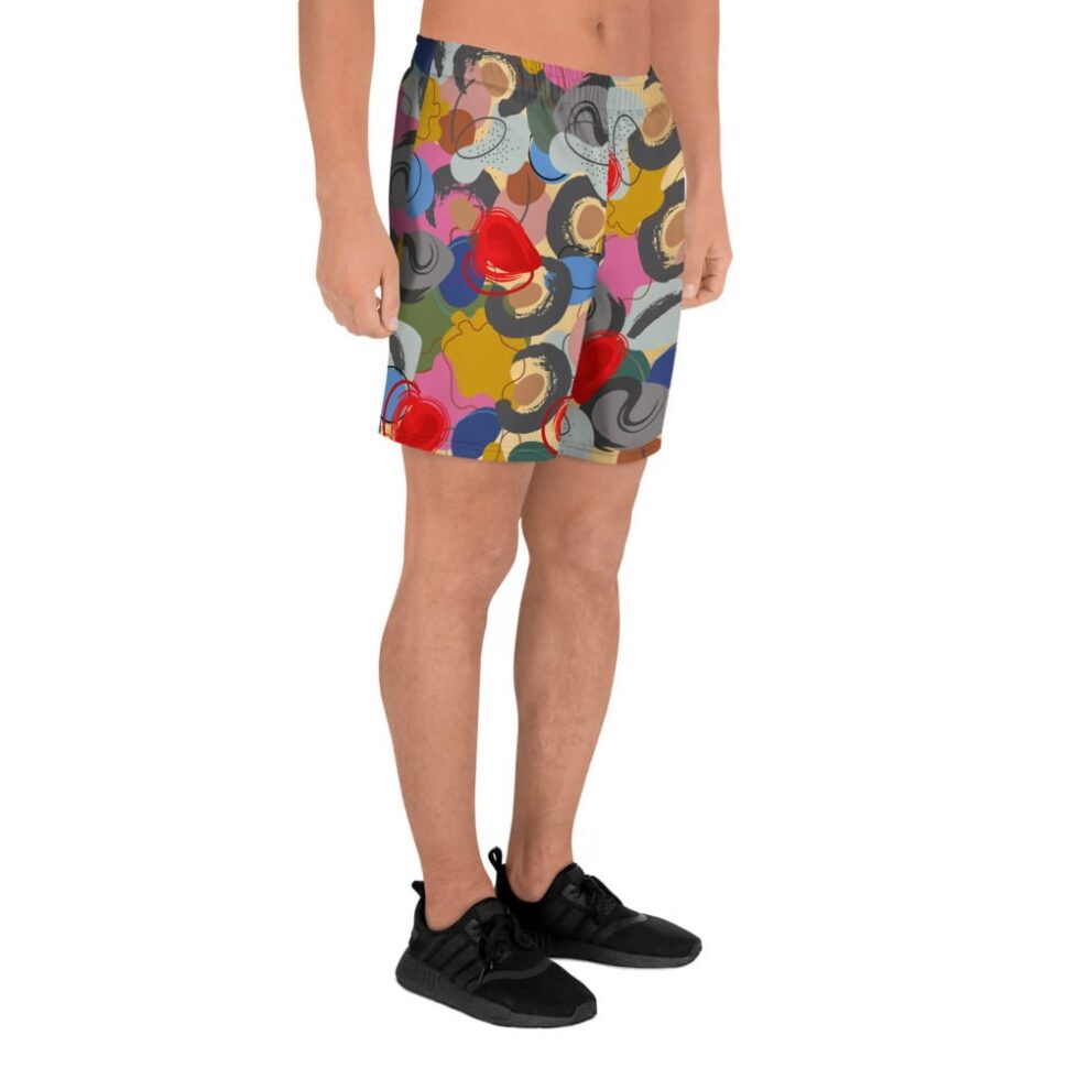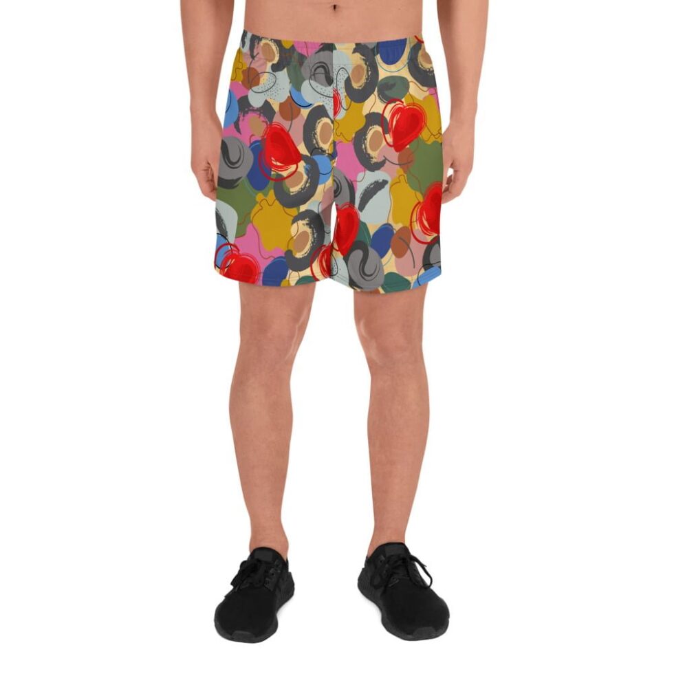 Vīriešu šorti ar abstraktu, krāsainu apdruku – Tavs radošais pludmales stils. Gūsti enerģiju, ko sniedz krāsas un izbaudi komfortu, ko sniedz ērtais piegriezums un vieglais audums!