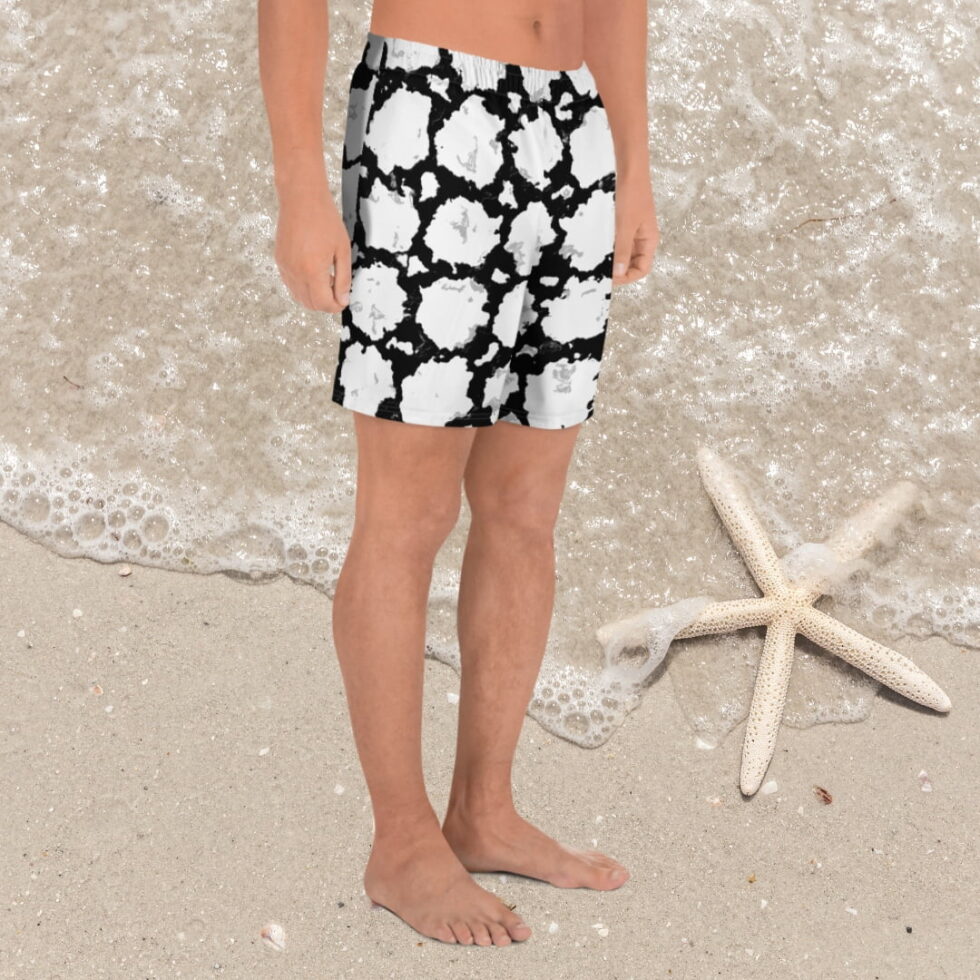 Vasaras šorti vīriešiem “Heino” ir klasiski un funkcionāli. Tiem ir vizuāli izteiksmīgs, bet tai pat laikā atturīgs raksts, kas izceļ individuālu stilu bez krāsu pārsātinājuma. Tie vienlaikus ir neuzbāzīgi, bet pamanāmi. Šortu audums ir ātri žūstošs un piemērots gan peldēšanai, gan pludmales aktivitātēm, gan saulainām vasaras dienām.